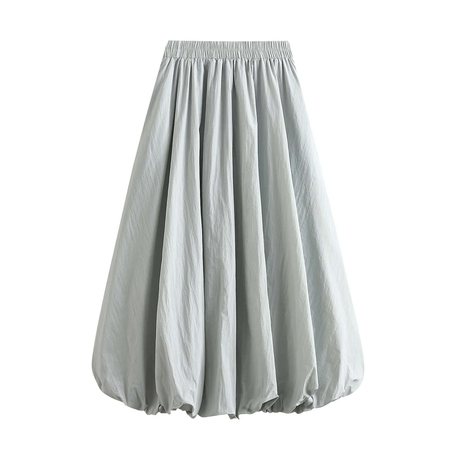 Women's Balloon Long Skirts Elegant High Waist Solid Color A-Line Skirts Casual Flowy Skirts