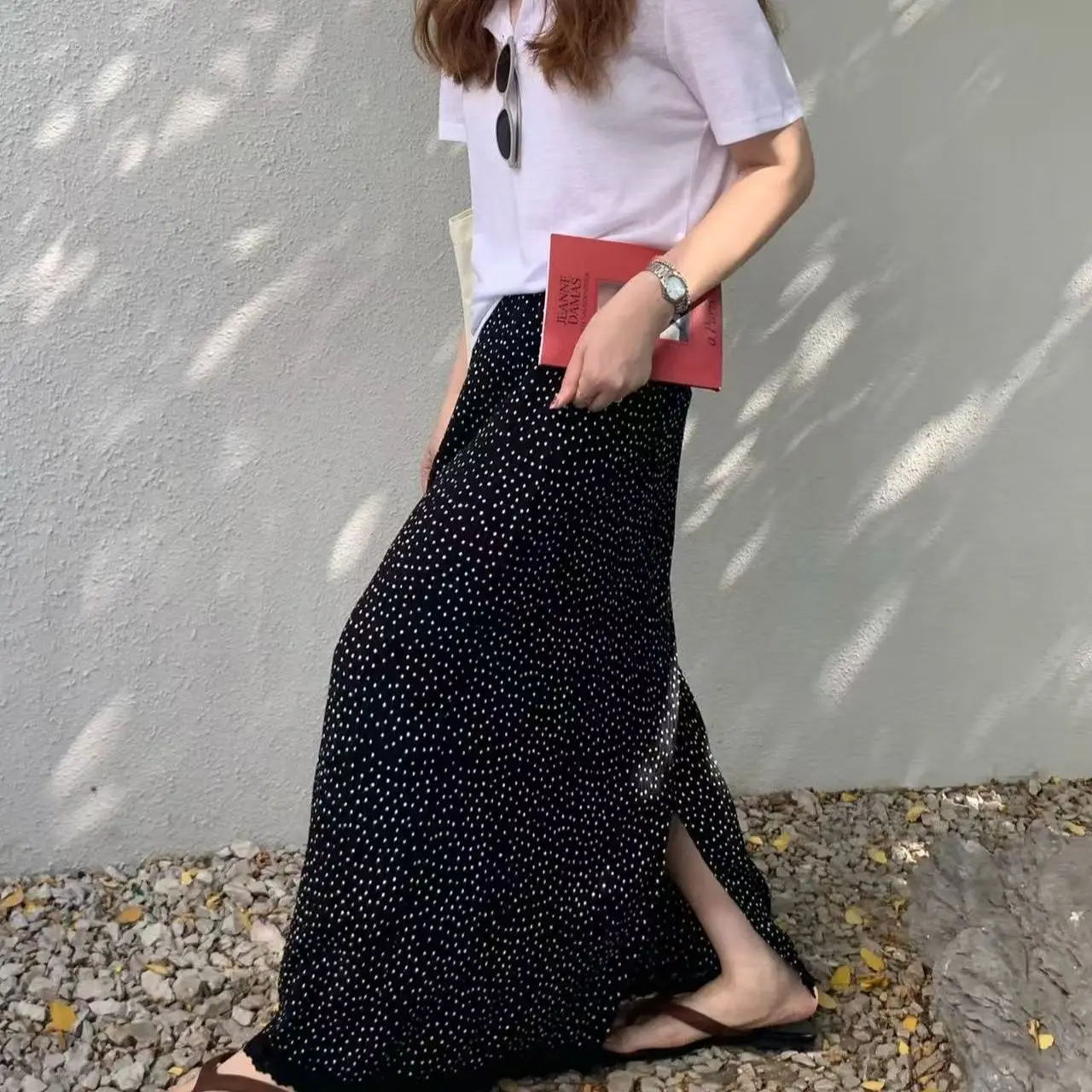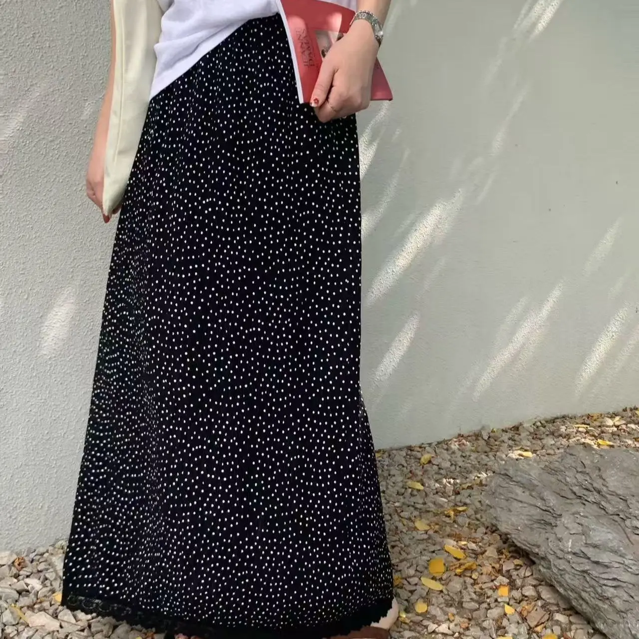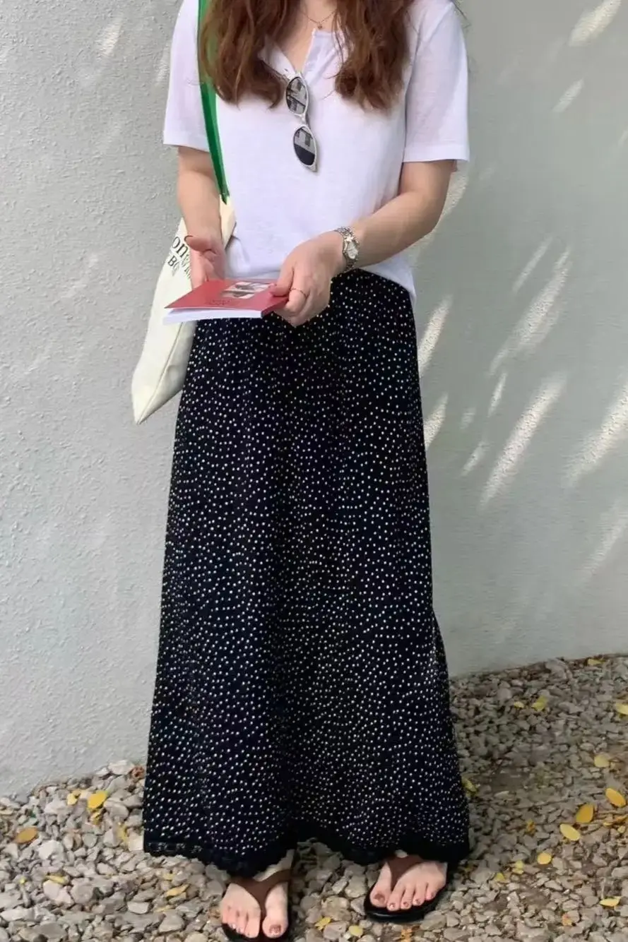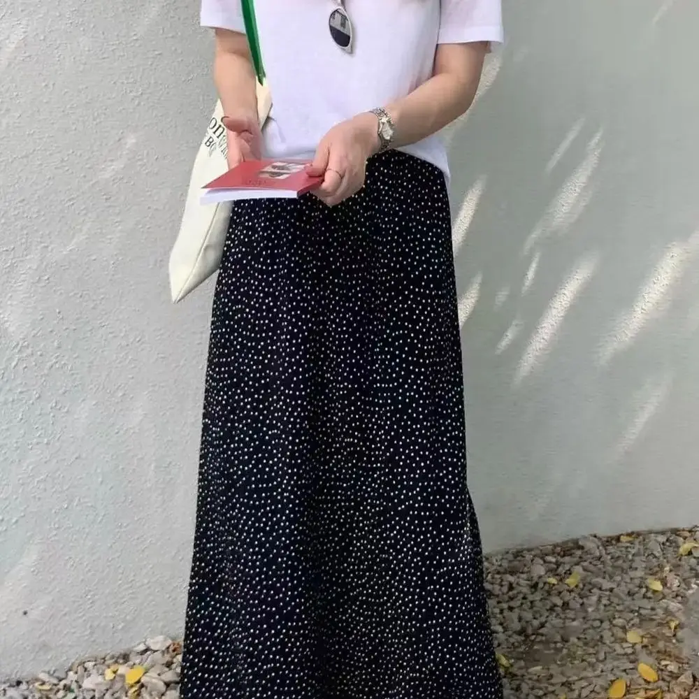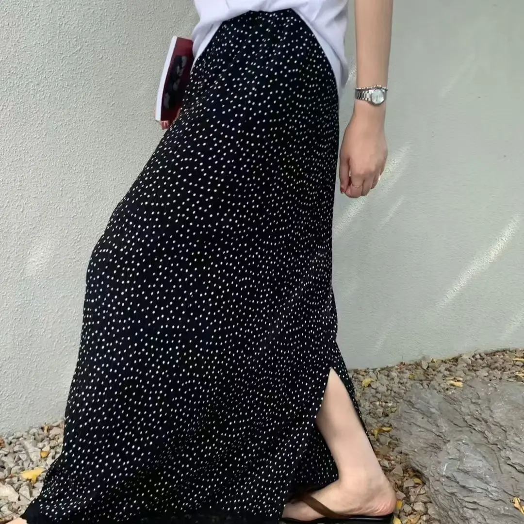 半身裙女2025夏季新款欧韩货松紧高腰褶皱圆点百搭显瘦网红直筒裙半身裙女2025夏季新款欧韩货松紧高腰褶皱圆点百搭显瘦网红直筒裙