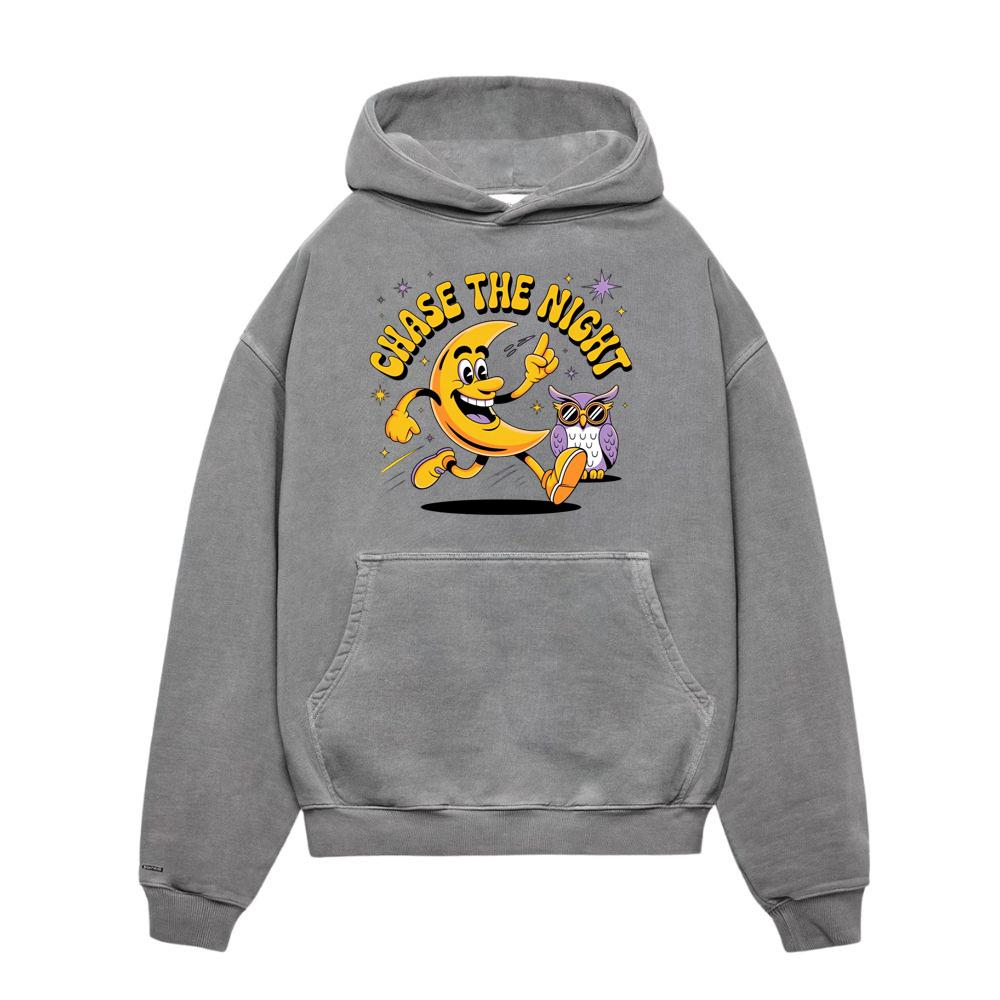 Chase The Night Cartoon Moon Running With Owl Hoodies