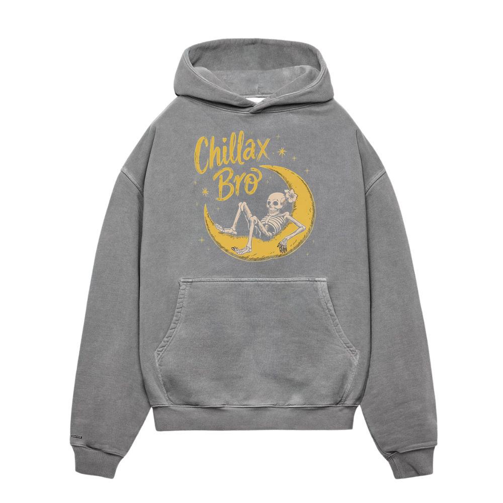 Chillax Bro Skeleton on Moon Cartoon Design Hoodies